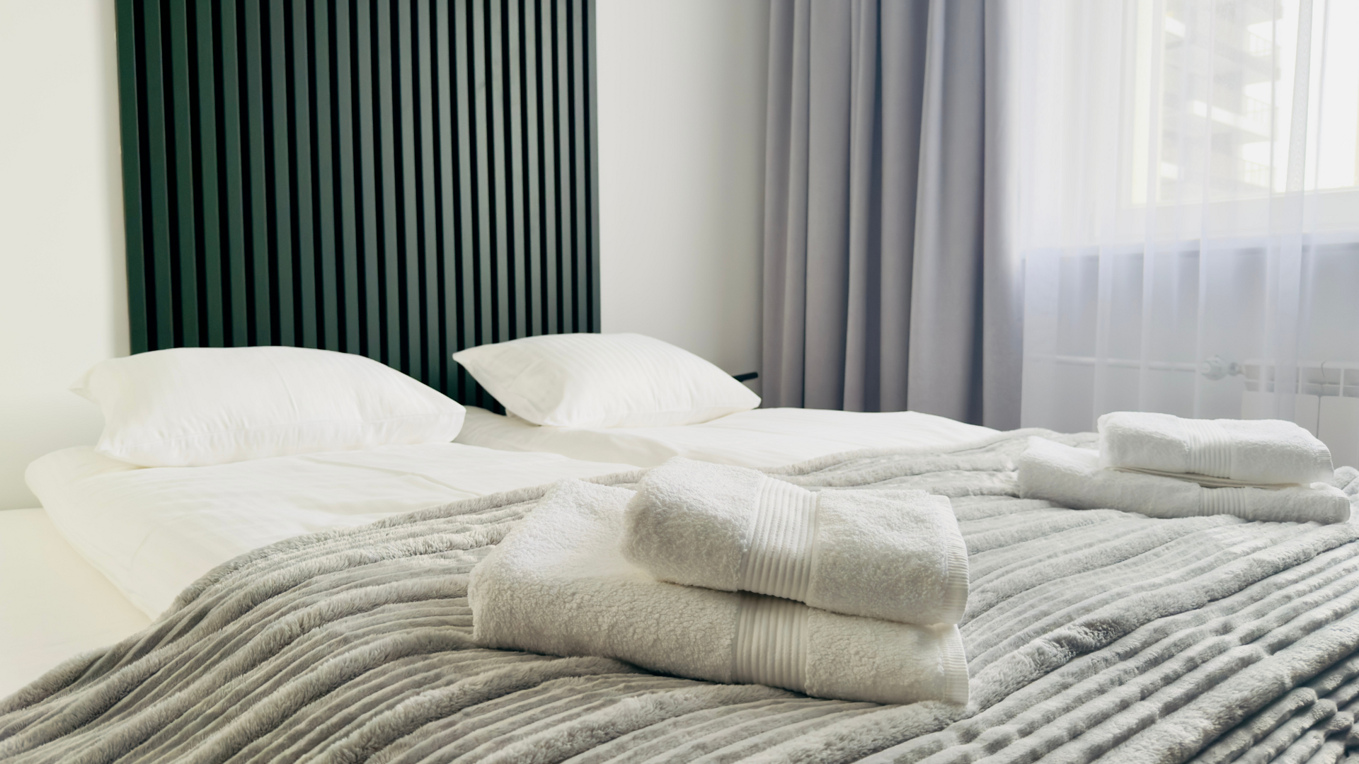 Sypialnia została zaprojektowana jako przestrzeń sprzyjająca wypoczynkowi i regeneracji. Wygodne łóżko kontynentalne z możliwością rozdzielenia na dwa osobne, wysokiej jakości pościel i zaciemniające zasłony zapewniają komfortowy sen.