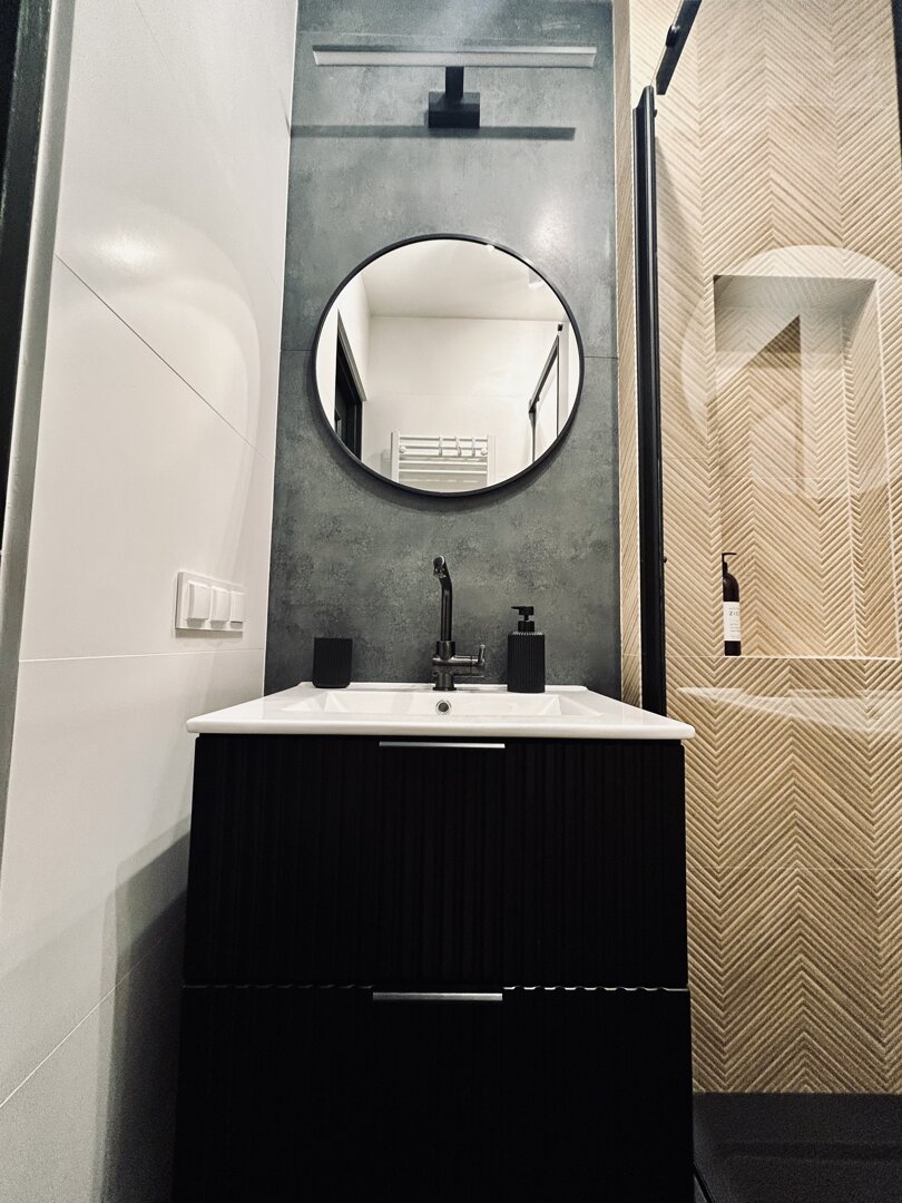 Apartament posiada dwie łazienki: jedną z prysznicem, drugą z toaletą i umywalką. To rozwiązanie, które daje poczucie swobody – szczególnie wtedy, gdy podróżujesz w parze, z przyjaciółmi lub rodziną.